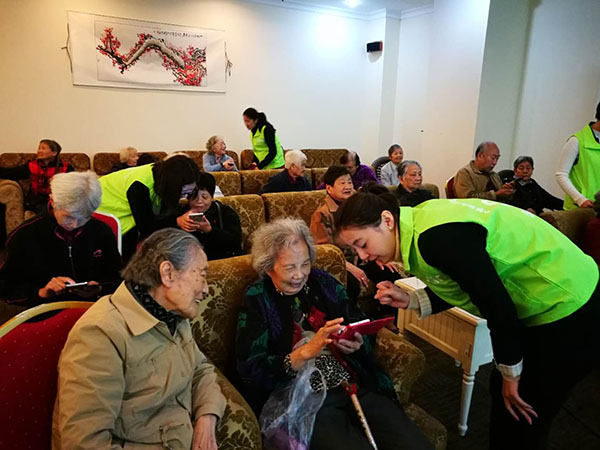 活動(dòng)現(xiàn)場(chǎng),老人們的學(xué)習(xí)熱情高漲,跟隨志愿者老師學(xué)習(xí)簡(jiǎn)單英語(yǔ)口語(yǔ),并且積極參與課堂活動(dòng)。志愿者們還耐心教老人們?nèi)绾问褂梦⑿诺刃滦蜕缃还ぞ撸瑤椭麄冞\(yùn)用所學(xué)英語(yǔ)語(yǔ)句和親人朋友發(fā)送語(yǔ)音消息。
