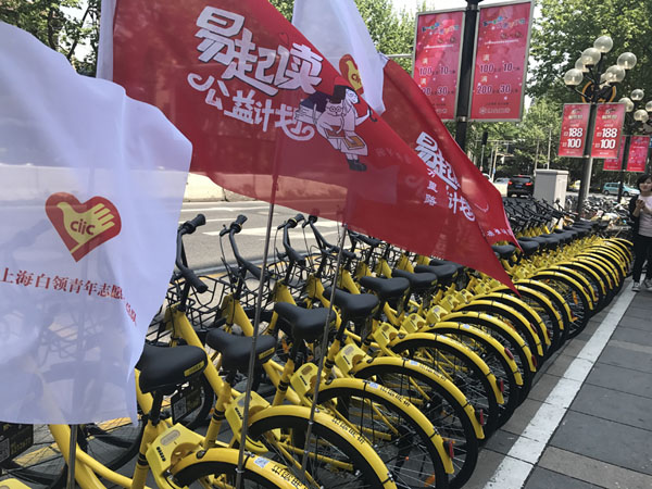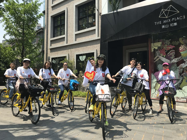 4月23日世界讀書日,中智上海白領青年志愿者總隊在這春光明媚的日子里組織了一場讀萬卷書、行萬里路的志愿騎行活動??傟犞驹刚邆凃T上由活動合作方OFO提供的小黃車,一路騎行宣傳易起讀書籍捐贈公益計劃,并在途中完成各個與讀書相關的定點任務。