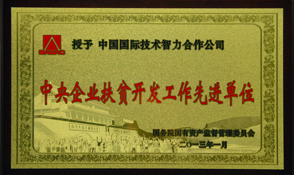 2013年1月26日,國(guó)務(wù)院國(guó)資委和國(guó)務(wù)院扶貧辦在京召開中央企業(yè)扶貧開發(fā)工作會(huì)議,深入貫徹落實(shí)《中國(guó)農(nóng)村扶貧開發(fā)綱要(2011—2020年)》、中央扶貧開發(fā)工作會(huì)議和全國(guó)扶貧開發(fā)工作電視電話會(huì)議精神,總結(jié)上一輪中央企業(yè)扶貧開發(fā)工作,并圍繞2001—2010年中央企業(yè)扶貧開發(fā)工作先進(jìn)單位和先進(jìn)個(gè)人進(jìn)行了表彰,對(duì)先進(jìn)單位和先進(jìn)個(gè)人部分代表進(jìn)行了頒獎(jiǎng)。中智公司被國(guó)務(wù)院國(guó)資委授予“中央企業(yè)扶貧開發(fā)工作先進(jìn)單位(2001-2010年)”榮譽(yù)稱號(hào)。國(guó)務(wù)院國(guó)資委副主任、黨委委員姜志剛,國(guó)務(wù)院扶貧辦副主任鄭文凱出席會(huì)議并分別講話,國(guó)務(wù)院國(guó)資委副秘書長(zhǎng)郭建新主持會(huì)議。中智公司參加了本次會(huì)議。
